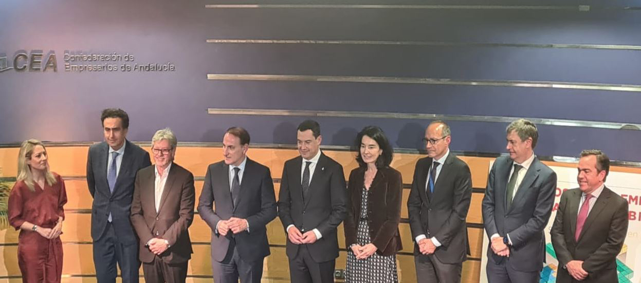 La clausura del acto tuvo lugar con la participación del presidente de la Junta de Andalucía, Juan Manuel Moreno Bonilla, Javier González de Lara, presidente de CEA y Manuel Azuaga, presidente de Unicaja Banco.