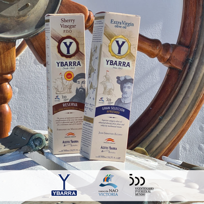 En conmemoración del 5º Centenario de la Primera Vuelta al Mundo, Ybarra ha desarrollado una edición limitada “V Centenario” compuesta por un aceite de Oliva Virgen Extra Gran Selección y un vinagre de Jerez Reserva que se embarcó en el buque escuela “Juan Sebastián de Elcano” para estar presente durante su travesía por 8 países