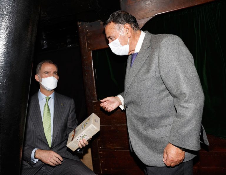 Hoy en Sanlúcar de Barrameda (Cádiz) nuestro presidente, Antonio Gallego, y nuestro director general, Francisco Viguera han entregado a SM el Rey Felipe VI nuestra edición limitada “V Centenario” compuesta por un aceite de Oliva Virgen Extra Gran Selección Ybarra “Elcano” y un vinagre de Jerez Reserva Ybarra “Magallanes”. Su Majestad ha recorrido las calles